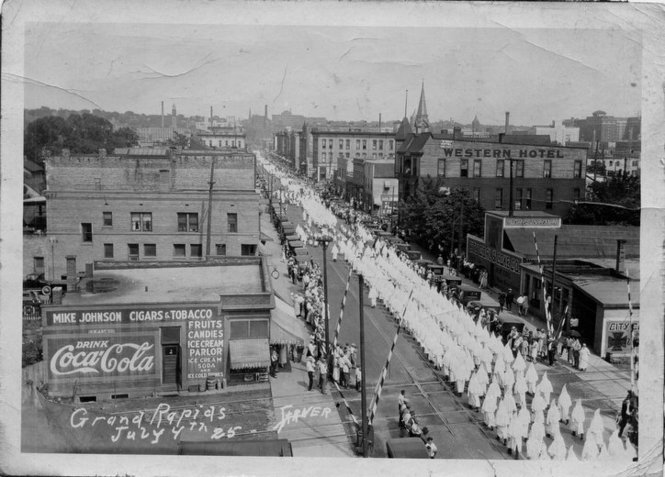 Approximately 3,000 Ku Klux Klan members march through Grand Rapids in 1925 (Bridge Street)