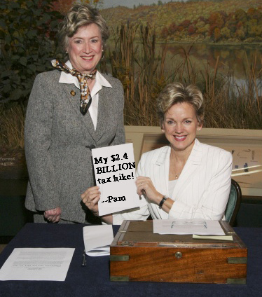 Suddenly it isn't about state government's budget but instead about spurring economic development. Hmm. She pulled the old switcheroo on us. But hey, maybe I'm just cynical. Maybe she actually has a more nuanced take on job creation and economic development these days and has grown as a person and a state legislator. I mean, she's talking about promoting policies that spur economic development. I'm sure she even voted against the massive Democrat tax hikes as they made their way through the House. Except she didn't.