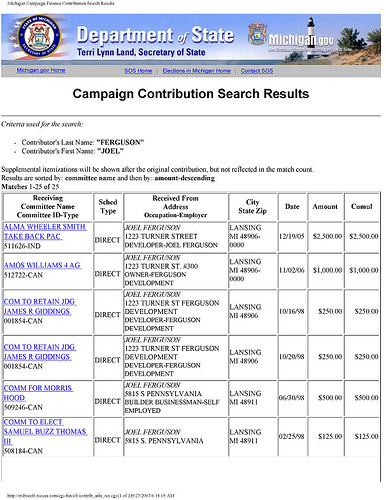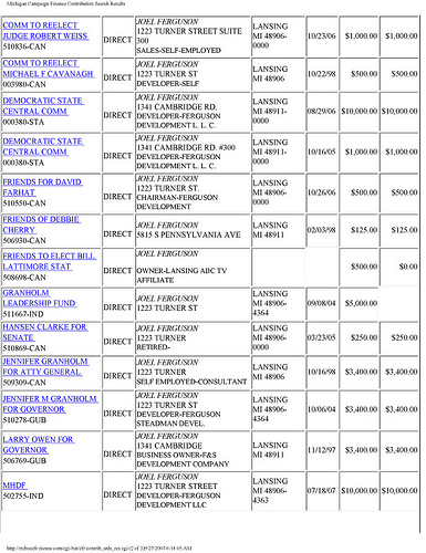 Having been made aware of the editing I've yanked the embedded video. You can watch Wilson's original broadcast report HERE. Click below for continuing coverage of the story including Right Michigan's own discussion on the topic going back to early June. Oh, and a copy of Joel Ferguson's extensive list of contributions to the Michigan Democrats scratching his back on this deal, including Governor Granholm and members of both the state House and state Senate. Connection? Nah... Read on...