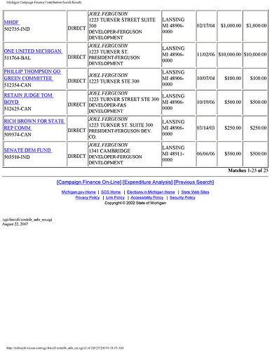 Part 2 of Steve Wilson's report. Part 3 of Steve Wilson's report. RightMichigan.com, June 11, 2007. RightMichigan.com, June 12, 2007. RightMichigan.com, August 8, 2007. Derek Melot at the Lansing State Journal, August 6, 2007. WILX TV Coverage, August 7, 2007. Lunchbucket Conservative, September 26, 2007.