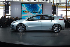 Yesterday the world met what could be the future of automobiles. General Motors unveiled their production model of the Chevrolet Volt, an electric (not hybrid) car that is expected to travel forty miles on a single charge of the battery. The average American commuter wouldn't have to pour a drop of gasoline in the vehicle to complete the daily trip to and from work and could recharge it in the garage overnight.The Michigan automaker is targeting a 2010 release date and pushing it hard but still needs to iron out a few kinks... like creating the battery they're expecting to actually run the darn thing. But aside from small details like that (and they're confident they'll accomplish their goal) the Volt is all but ready to go. And it had better be... Let's just say that after Barack Obama's roll-out yesterday of his "Great Lakes Cleanup" scheme, Michigan's automakers are going to need to mine every drop of ingenuity they can manage. But before we take a look at just how strikingly bad a concept the Democrat's new bribery plan is (he wants to raise taxes on energy producers, raising your energy rates and fuel costs to generate cash he can use to buy Midwesterners' votes) let's focus on the good news... and maybe even a little bit of mixed news. The Volt. Is. Cool. Read on...
