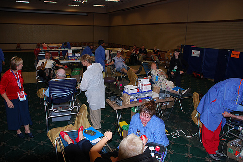 ![]() Michigan convention delegates give until it hurts while others wait in line for their turn. At this point nearly forty delegates had already gone through the donation center while folks from other states continue arriving at the hotel to help!