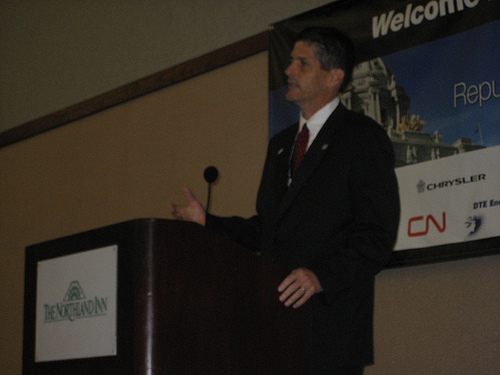 ![]() Day three at the Republican National Convention and the breakfast program was a big one for the Michigan delegation. There was a packed room for the state's native son and former Governor of Massachusetts, Mitt Romney. Many from the Michigan press corp missed out on the First Lady's surprise appearance yesterday but they were out in force this morning, and why not? As excited as everyone is about John McCain's selection of Sarah Palin as his running mate Mitt is still a local hero with many of the Michigan Republicans who gave him a Presidential Primary win at the beginning of the year. And the man received a hero's welcome. "It is always nice to be back in Michigan. And this is the Northland Inn? We almost are in Michigan," Romney opened, with a quip about the hotel's distance from the Xcel energy center. (A situation more than remedied by the state's front-and-center location on the convention floor.) Romney's remarks centered around the difference between John McCain and Barack Obama, from their proposed handling of the economy to the war on terror and the surge. After his remarks Governor Romney pulled one out of the Dick DeVos playbook and spent a solid twenty minutes greeting folks individually, speaking to anyone who wanted to speak with him and posing for what must have amounted to hundreds of pictures. Very cool, very real and very genuine. Romney brought his son Josh with him but he wasn't the only son of a candidate to make an appearance. Senator McCain's son Andy also stopped by to talk about his father and service and followed in Romney's footsteps, sticking around to speak with anyone and everyone who wanted to say hello.
