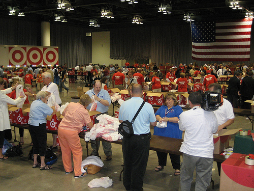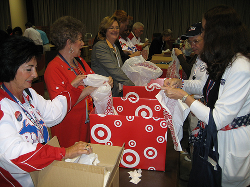 ![]() That right there is the lower level of the Minneapolis Convention Center and the production lines you're looking at are assembling personal care packages for the displaced residents of the gulf coast. It is easy to take items like soap, tooth paste, tooth brushes and deodorant for granted... until you find yourself without them. The McCain campaign worked with Target to grab all of those items (plus hand sanitizer) and delegates from across the country used them to create a full 80,000 (!) care packages.