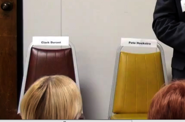 Why bother with an argument in the realm of other folks ideas when all you have to do is effectively turn their microphones off? Or is there the other possibility that Hoekstra or Durant fear a round of questions emanating from some place north of (the safer) Ann Arbor, or southern Michigan campaign finance grounds? Who are they really? Why will they not stand on one side or another of those who would challenge THEIR ideas and not debate? Because to do so, would once again demonstrate the emperor's inability to dress appropriately. Clark has no political history, but is being backed by NPV Saul nowadays. Maybe we might find out his sympathy to that disastrous end. And the other guy? To be sure, Pete's record would certainly come into question. And by golly let us not assume for a minute that he would be willing to show off his political physique; which might be a grotesque hollowed out shell with a distended belly of big labor special interest. We see it here. We get it. Not a big enough market to worry about. Insignificant. Check. No position comparisons necessary up here anyhow.