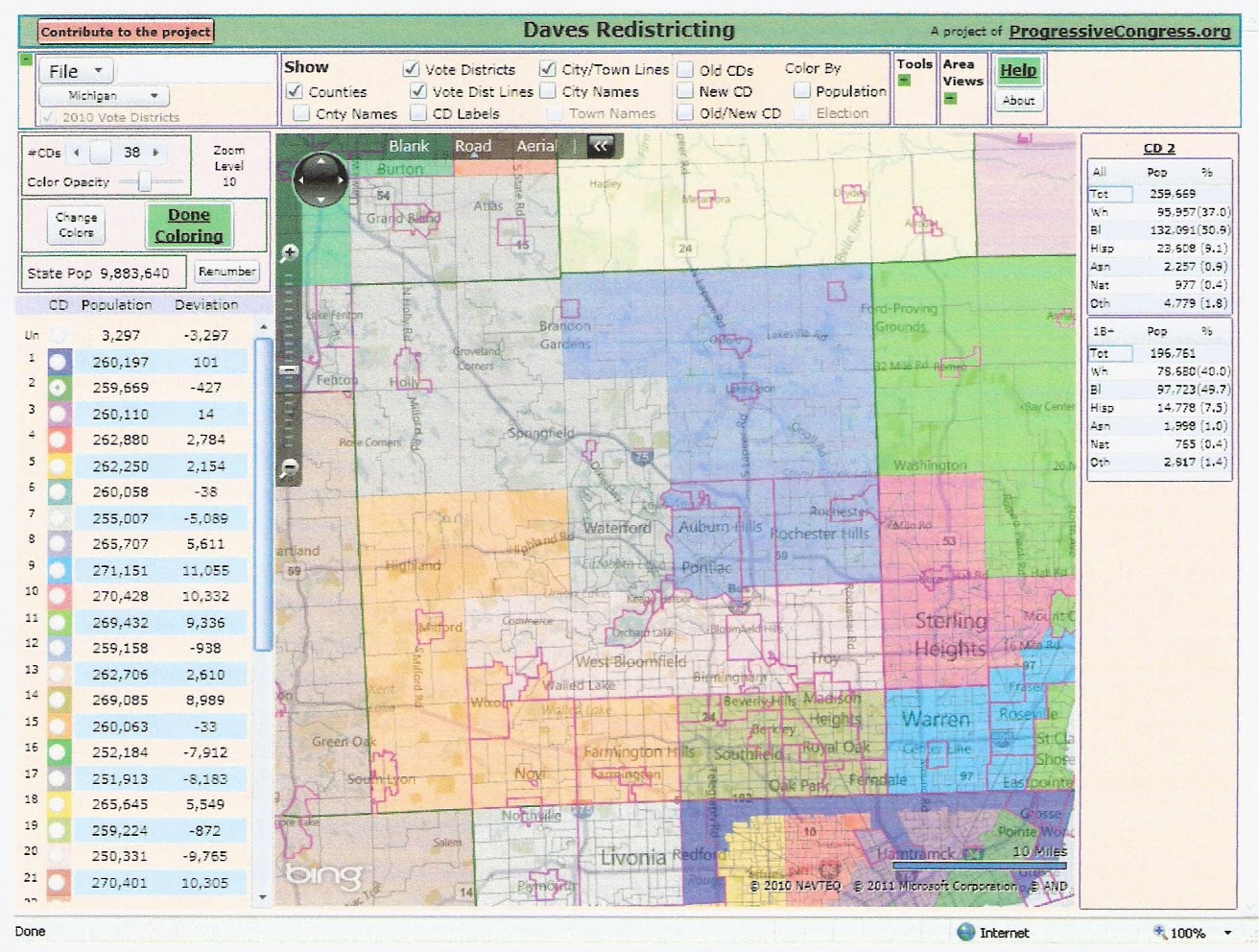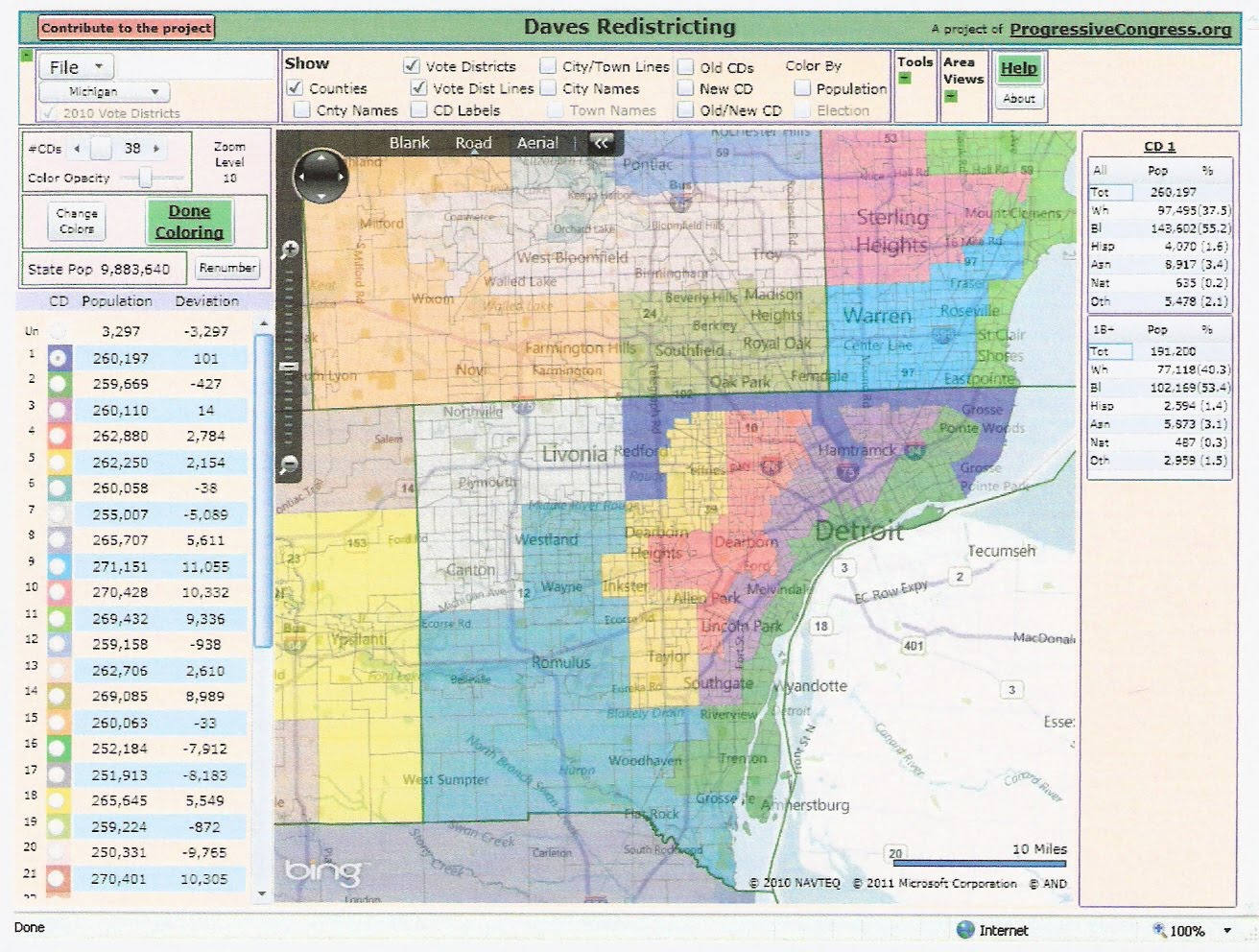 With the release of Michigan's census numbers last month, redistricting season is well underway. I previously proposed two congressional district maps, and Republican Michigander has offered his 10-4 plan as well.