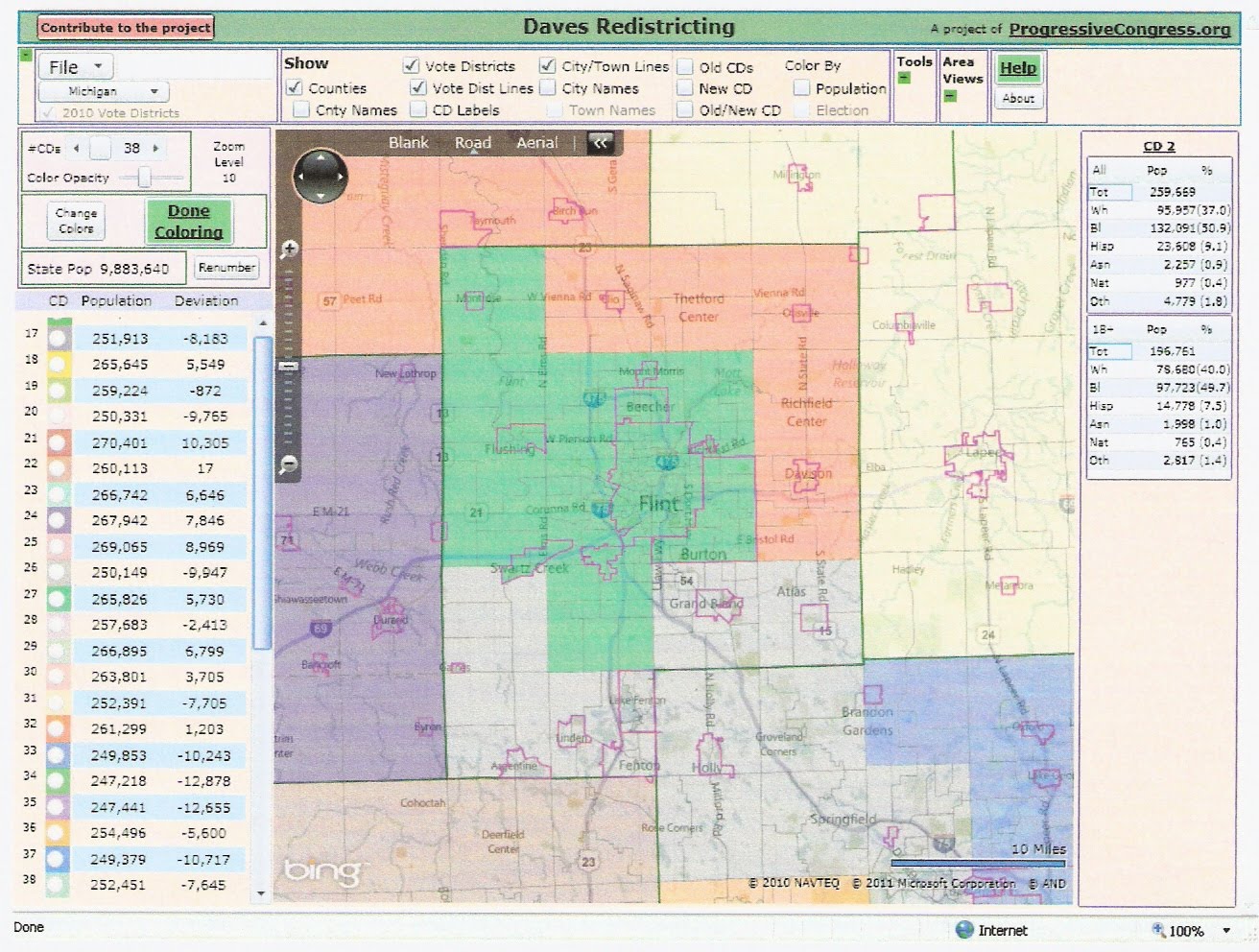 The breakdown for these districts is 20/1/5/1/11 from R to D. The map makes a lot of seats safer, but it almost surely sacrifices the Saginaw seat.
