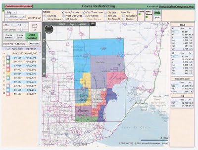 Here is the new Republican map. Here is my alternative map. There are several missed opportunities in the new map. 1. The district based in the Grosse Pointes was Republican until 2008. Demographics are tough here, as Harper Woods has rapidly become half-black and the district needs to gain population. The Grosse Pointes are a real "community of interest", and should not be split as they are in the new map. The only way to maintain a competitive district is to stretch it down to River Rouge and Ecorse, which are 20% Republican instead of 3% in Detroit. Admittedly, this is pushing it a bit, but the district has only one city break and the lines could be cleaned up by splitting a few precincts. This district is no better than a tossup (53.1% GOP average in 2006), but at least the GOP would have a chance here. Now this would eliminate one of the black-majority districts, but it can be replaced by a district (11) that stretches from Inkster through north Dearborn Heights to western Detroit.