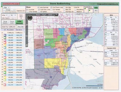 Michigan Redistricting: State House Part I: Wayne County The Republican state house map was quite a bit different. Part of this was due to the desire to protect existing districts. This led to districts being distributed differently in the Thumb, south-central Michigan, and the northeastern Lower Peninsula. Even on these terms, though, some parts of the map still perplex me. I decided to take another crack at the state house map. This time, I started with the Republican map and made changes in particular areas. Since my first map, Dave's Redistricting App has added some election data for Michigan, allowing for more precise analysis. I. Wayne County I don't know what Republicans were thinking in Wayne County. Currently Wayne has three Republicans. Two are strengthened under the new map. There is one more district containing the majority of Canton and Van Buren that is winnable.