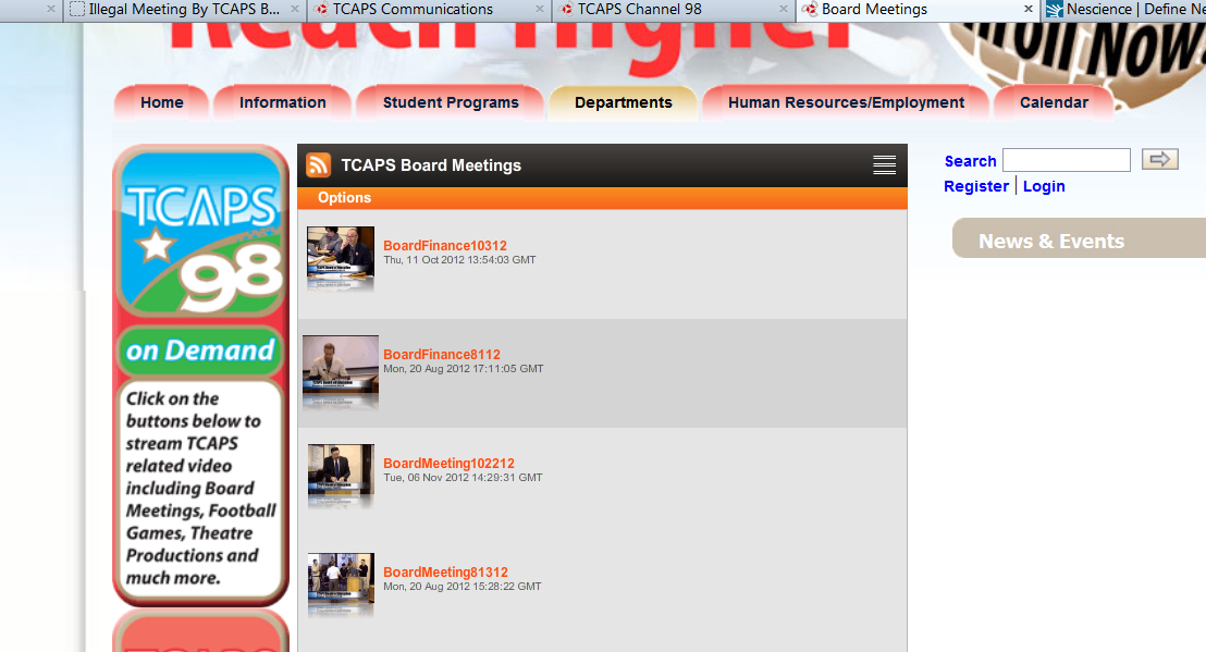 If not legally, (We will probably file a lawsuit) it will be the public relations aspect that will linger over a board that has been less than forthcoming on many of its operative schemes. The posting I reference above received some feedback from Kelly Hall, the TCAPS schools board president. She is the one in the video (in the posting) who suggested she would call the sheriff. (a side note: school board meetings with opposing ideas present, sometimes sees the board requesting police presence) Instead of an apologetic attitude, she places the failing of the scheduling in the perception of the TCAPS.NET site visitor, not with the actual content of that site. Her comment: