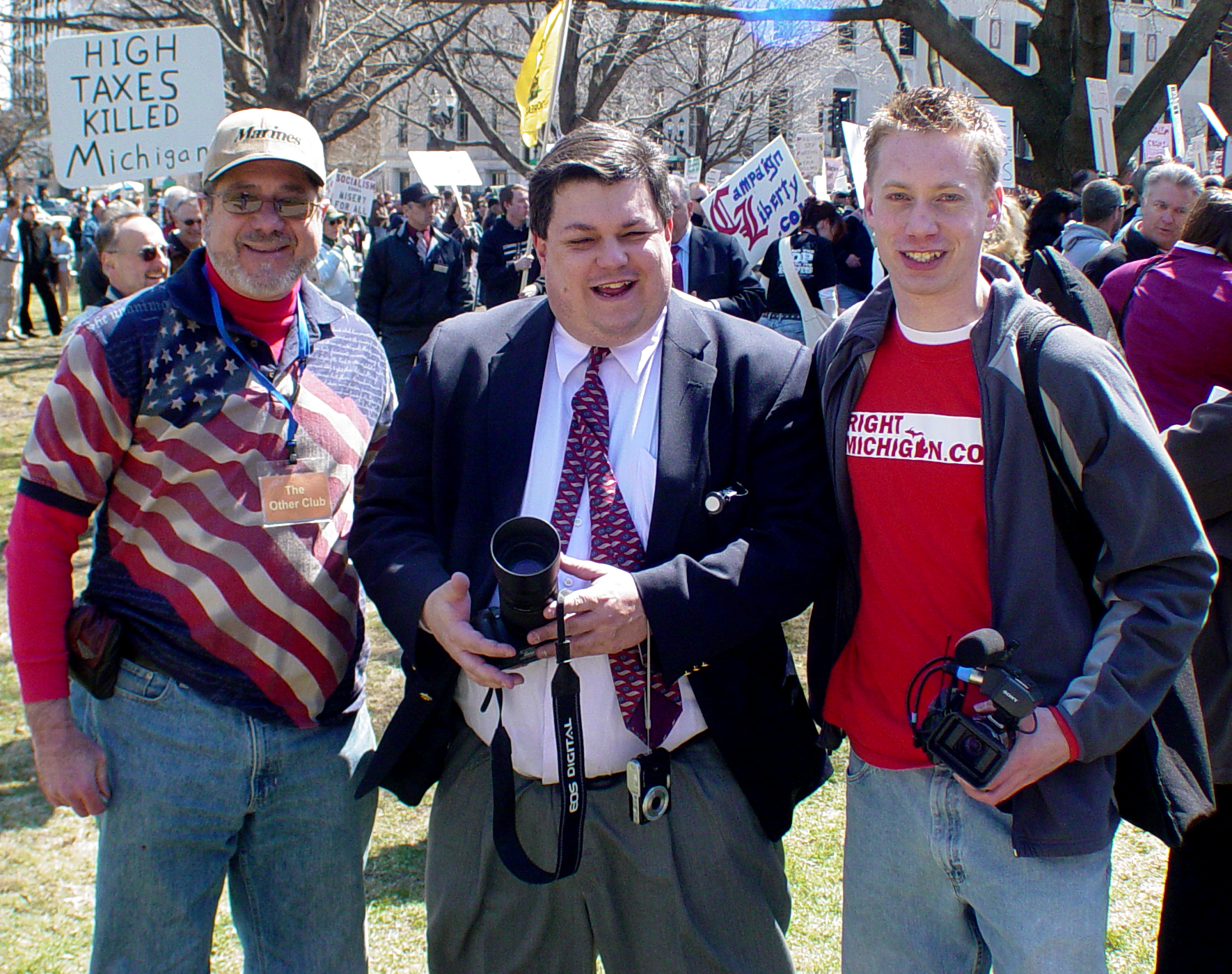 The Lansing event, organized by Joan Fabiano, Melanie Hall, and Wendy Day, saw roughly 250 activists assemble on short notice, with RightMichigan.com founder Nick DeLeeuw, a number of notables and myself in attendance.These event happened throughout the State of Michigan and nationally with gatherings large and small. The cold however, did little to deter those who would be heard. Arguments for weeks afterward centered around attendance. The media for its part wasn't sure how to cover truly well attended protests. Used to the 20 or so lefties on the earth first circuit, it was strange for reporters to see large crowds of people who not only had strong words for government, but had the wherewithal to keep it peaceful, civil, and very much to the point. Hundreds and thousands eventually began showing up at regular 'tea' events, with a 5000 person event first in Cincinnati, then with our own blockbuster affair in Lansing, and special guest Joe the Plumber. 5000 in attendance as reported by the Michigan State Police from their helicopter assessment photography. And all of them truly awesome folks, and at least one of whom we miss tremendously.