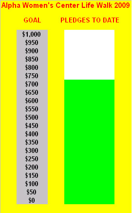 Two weeks ago I asked everyone here to prayerfully consider putting a little bit of their dwindling disposable income where our collective mouth is and folks have really responded... (and that's saying something in this economy) but there's a little more work yet to do.A big THANK YOU to everyone who has already made a pledge to support my participation in the 2009 Alpha Women's Center Life Walk! We set a goal of raising $1,000 via the Right Roots to support the awesome work Alpha's doing. They provide free pregnancy testing and counseling, abortion alternative counseling, post abortion counseling, referrals for adoption and medical sercvices, help women and families secure housing, provide prenatal and postnatal parenting classes and make health presentations at schools and youth groups across the state. They're meeting needs in the community by loving (not judging) every single woman who comes through their door. This year the Right Roots have come through to the tune of $695. So far. That leaves only $305 until we reach that thousand dollar goal. $305 and five days to get there before I jump on the bike and pedal like a mad-man. And since I'm utterly and completely devoid of shame I'm going to ask again... would you consider making a pledge of $10, $25, $50 or even $100? As always, you can leave a comment after this post or email me at RightMichigan@gmail.com. Thank you all again. We've got an amazing team to come through the way you consistently do, and better than engaging and discussing and blogging and debating... you're helping save lives. Props. |