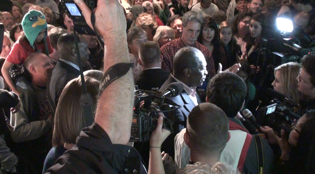 What an incredible evening.After the debate, the Cain train made it to Traverse City. I'll hit on it a little more tomorrow, and probably feed pictures and video for the next week, but I felt the need to get this out tonight. On short notice, a few conservatives were able to pull together a little gathering for Herman Cain to get a little more base support for Michigan activities. Some of that support is being recruited at the michigansupportscain.com website. What we thought initially to be a 2-300 person affair, grew in our minds to 500-600 shortly before the event. Folks, we had well over 1200 (maybe 1500) with standing room only and overflow, including the necessity to not allow any more folks inside dues to fire regs. The man who would be the Presidential nominee for the Republican party not only charmed the crowds, but those in the media as well, garnering favorable coverage throughout the entire night. His straight forward way of talking, and inspiring story continues to captivate and win over new Cain supporters every time he speaks. I could not have wished for a better turn out of enthusiastic supporters during this night where EVERYTHING went right. |