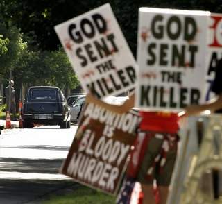 ![]() Those "protesters" are from the kook lone "church" in Witchita, infamous for mocking funerals of fallen soldiers! I kid you not! They are the bane of every conservative group on the face of this nation! It is a rogue church not affiliated with any denomination. They are kooks, and are well known as such. But they are a convenient photo op top paint the entirety of the pro-life community as demented kook bent on murder. From the article: (3 comments, 538 words in story) Full Story By Theblogprof, Section News